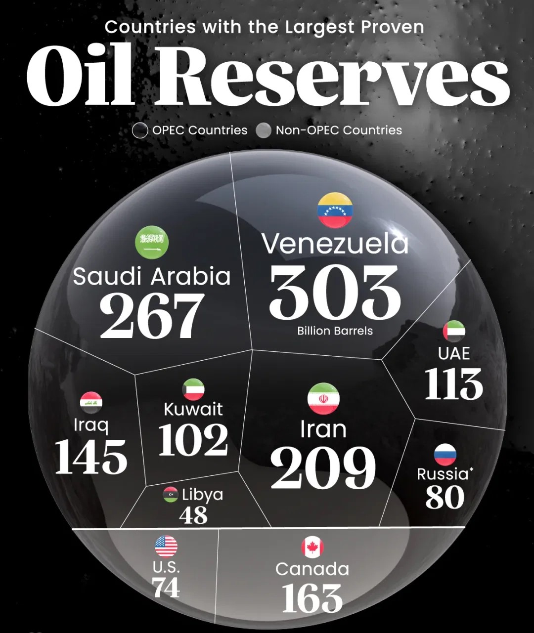 Given that Venezuela’s reserves are nearly 4× larger than the U.S. (74 bn barrels) and significantly above Russia (80 bn barrels), even partial monetization would reposition it among the top three global oil revenue generators.